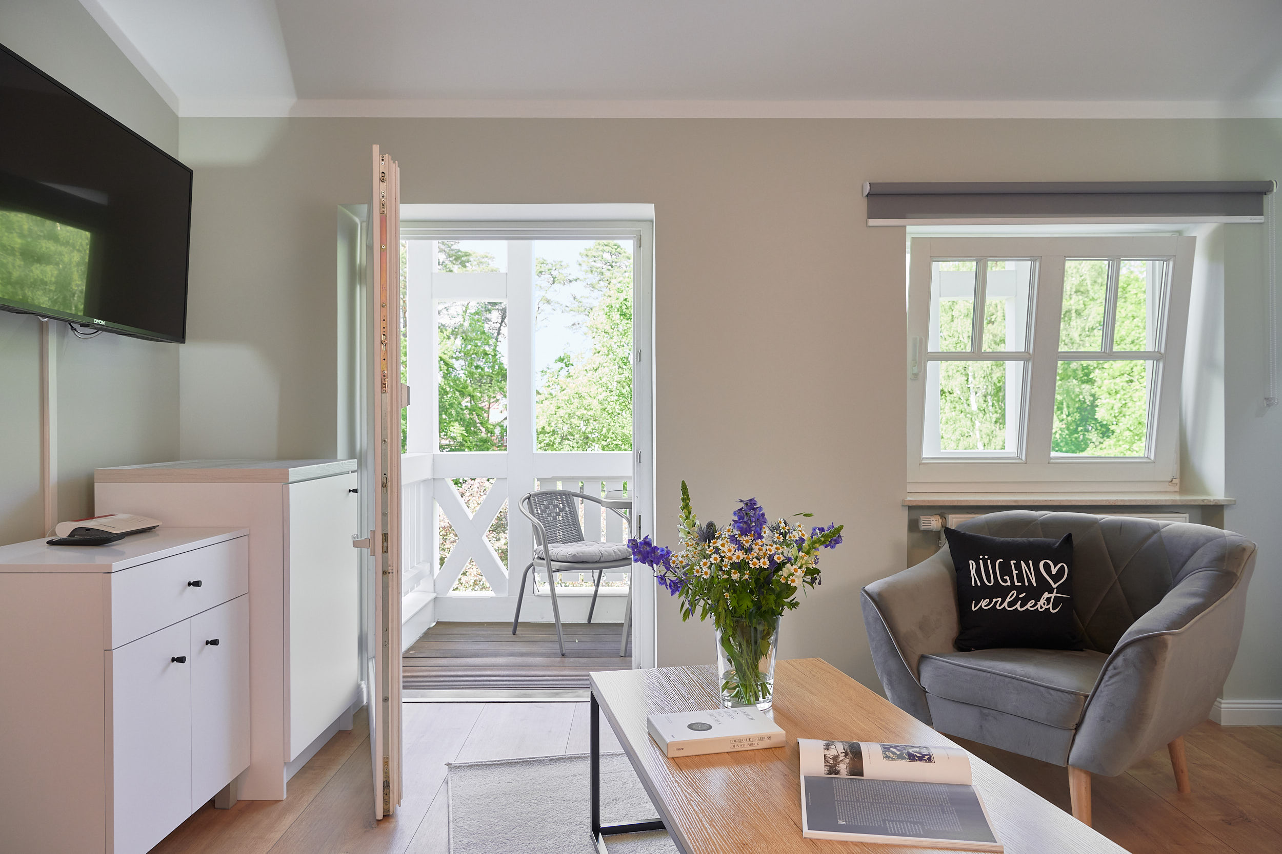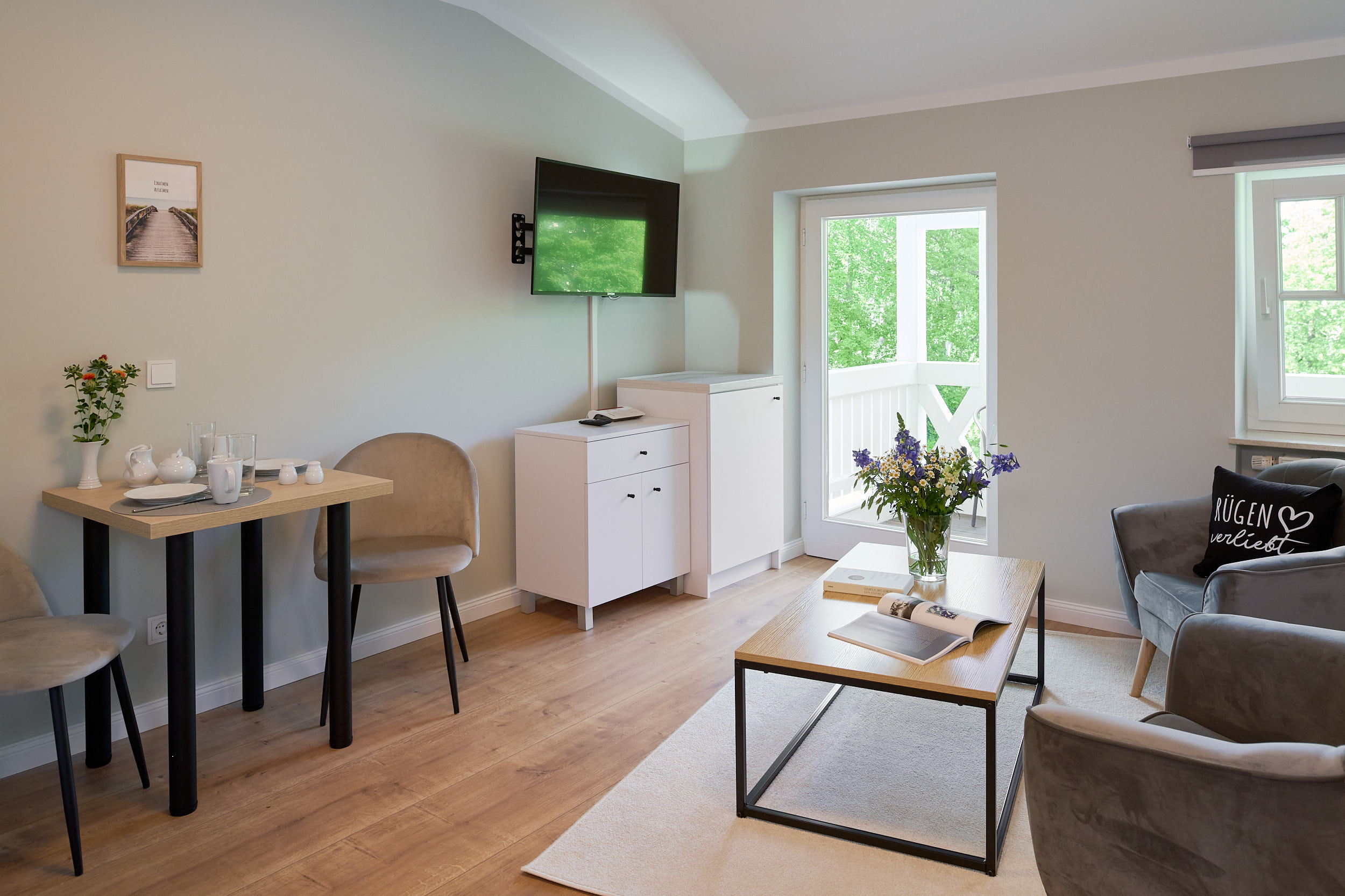 Das 2-Raum-Appartement mit 38 m² und Balkon zur Gartenseite für 2 – 3 Personen ist die ideale Ferienunterkunft zu zweit, sowohl für Ruhesuchende als auch für unternehmungslustige Gäste.